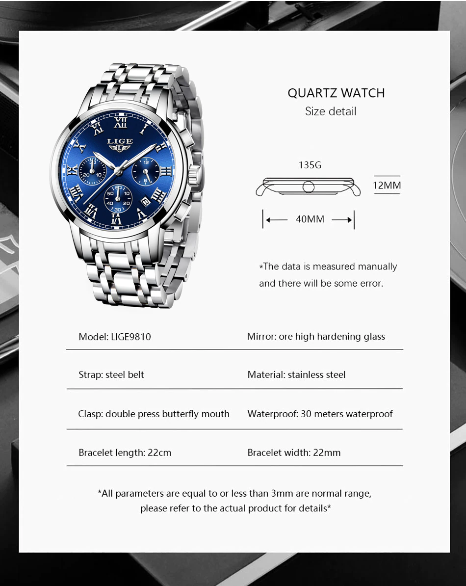 Vodotěsnost: Hodinky disponují vodotěsností 3 ATM, což znamená, že odolají běžnému kontaktu s vodou – například dešti nebo stříkající vodě při mytí rukou. Nejsou však určeny pro koupání nebo plavání.