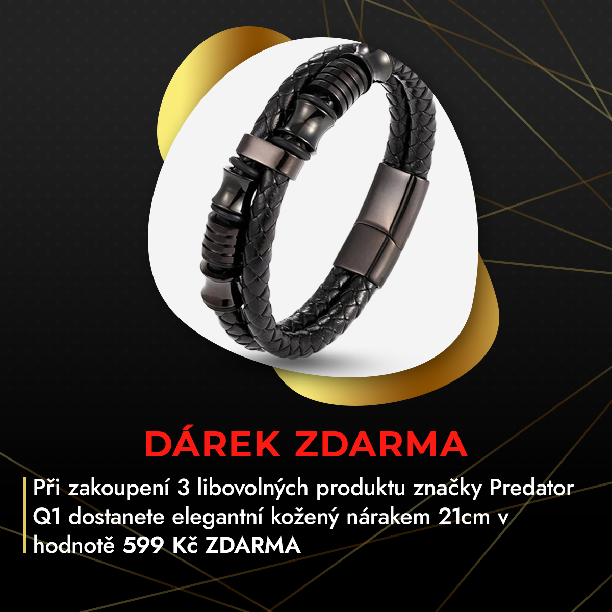 Při nákupu libovolných 3 produktů značky Predator Q1 od nás získáte jako dárek elegantní kožený náramek o délce 21 cm v hodnotě 599 Kč zcela ZDARMA.
